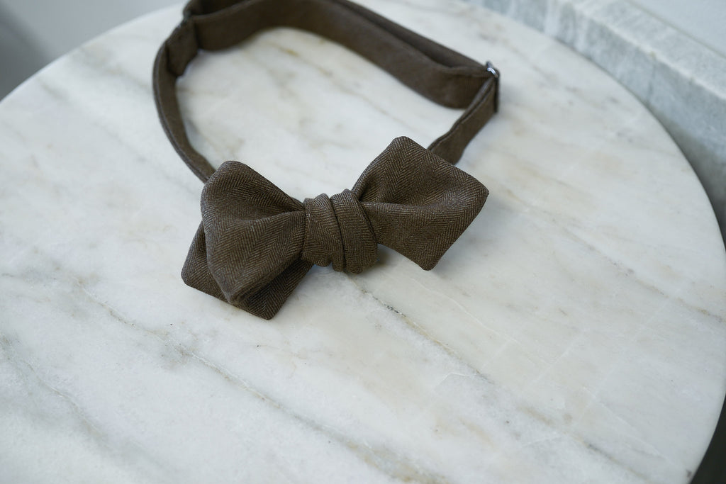 Undyed Escorial Brown Herringbone Bow Tie (only 1 piece in each style)