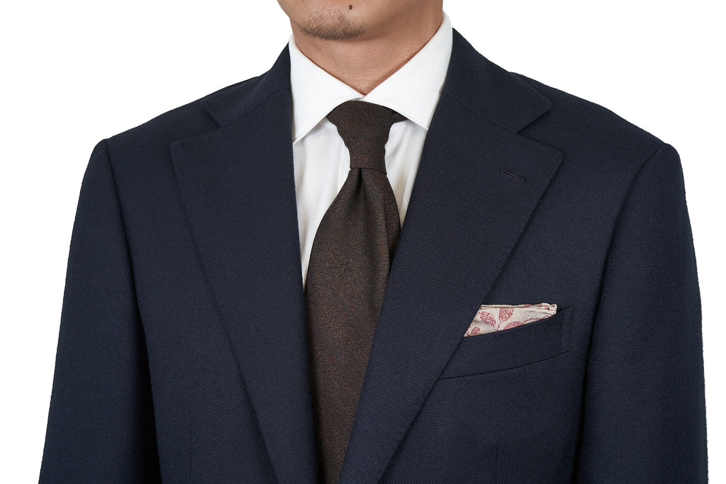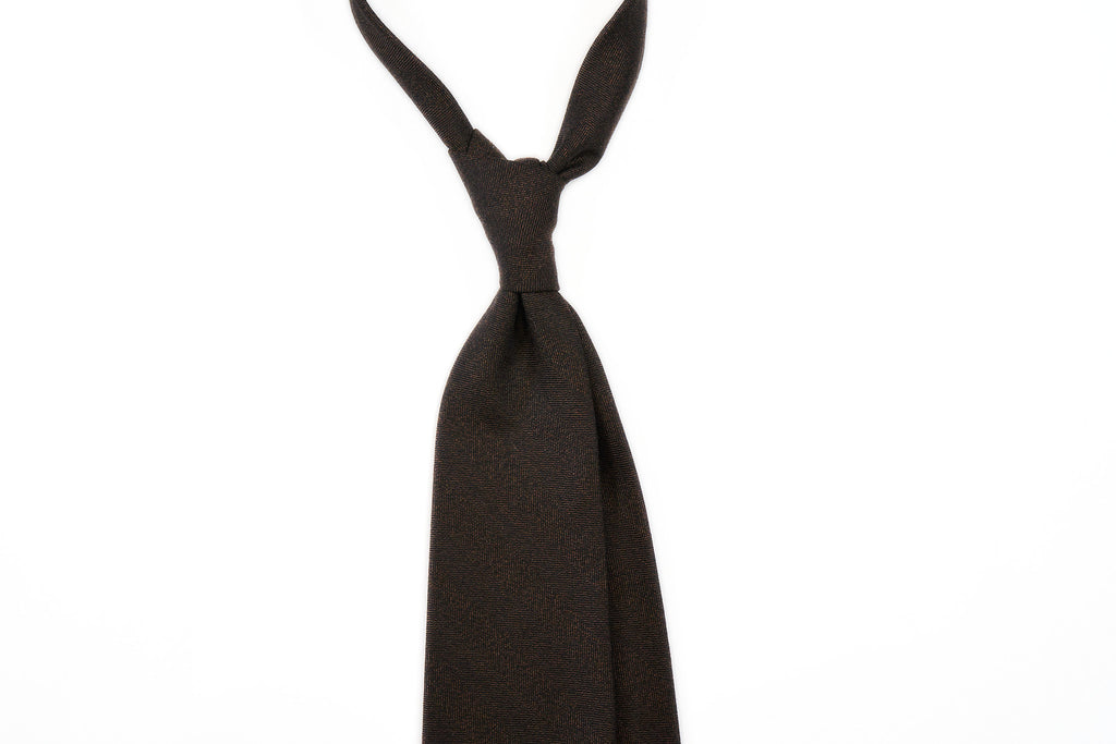 Made of a pure wool woven in Italy, this softly finished tie has a classic mid sized herringbone weave in brown melange and black shades. A classic casual tie that works with a variety of outfits from a navy sport jackets to tan suits!